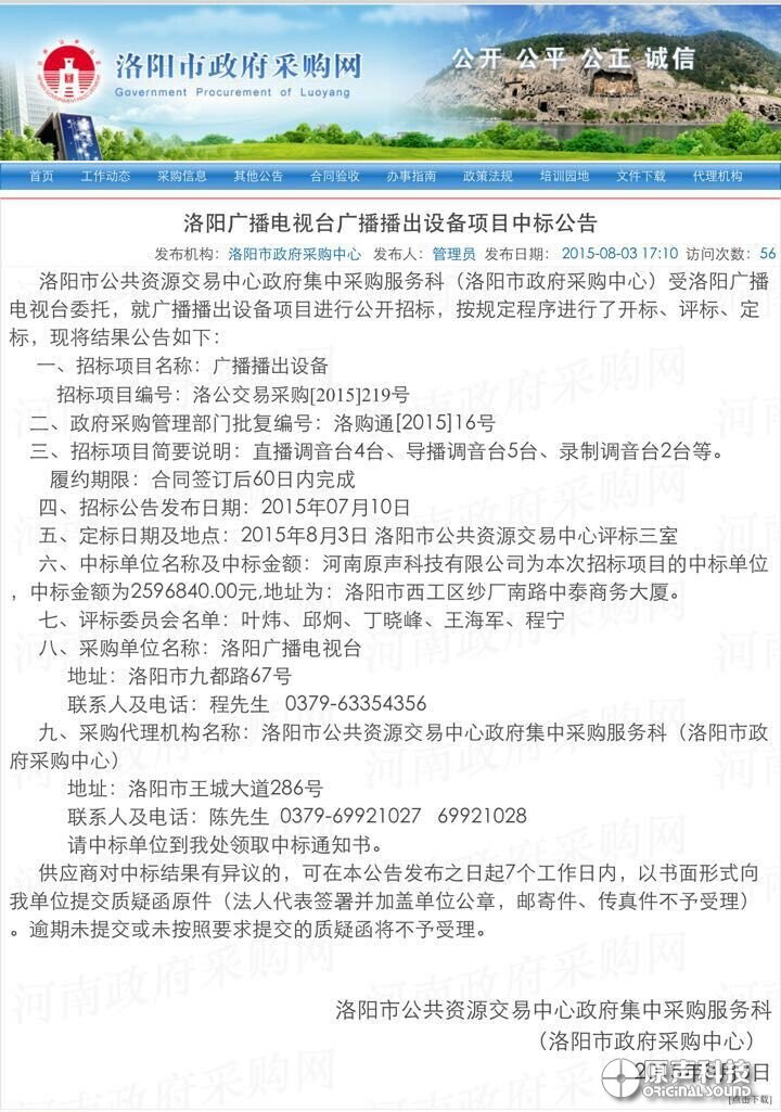 我公司成功中標洛陽廣播電視臺廣播播出設備項目