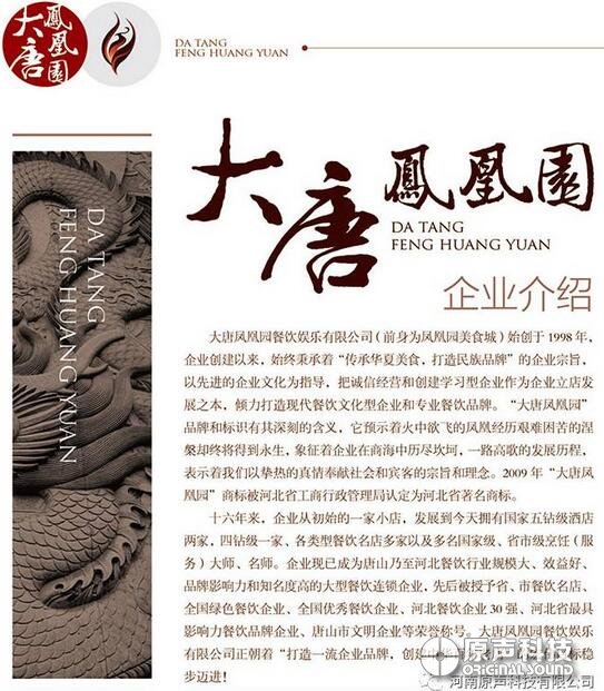 2016年河南原聲一次隅然的機(jī)會,結(jié)識了河北省餐飲龍頭企業(yè)--唐山大唐鳳凰園,再一次擦出了火花。